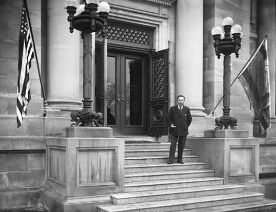 Archer Huntington’s philanthropy and “ventures into museum building” were not limited to the Hispanic Sociaty. After founding the Hispanic Sociaty in 1904, Huntington invited other institutions with which he was associated to relocate to Audubon Terrace. These included the American Numismatic Society (1907), The American Geographical Society (1910), the Church of Nuestra Señora de la Esperanza (1912), The Museum of the American Indian, Heye Foundation (1916), and the American Academy of Arts and Letters (1923). Ultimately, Huntington not only donated the land to all of these institutions, but also paid for the construction of their buildings, with the exception of the Church of Nuestra Señora de la Esperanza. In Spain, he was instrumental in the founding of the Museum of the House of Cervantes in Valladolid and the Museum of the House of El Greco in Toledo. In the years that followed he founded Brookgreen Gardens (1930) at Murrells Inlet, South Carolina, and The Mariner’s Museum (1932) at Newport News, Virginia.