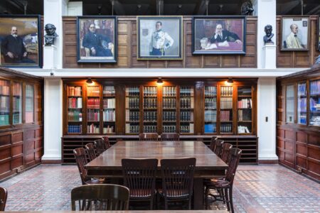 When the Society first opened to the public in 1908, the main court served as the Libraryβs reading room until 1912 at which time the reading room was moved to a temporary one-story structure built in 1910 to the west of the main building. The main court was then dedicated to the exhibition of art. The reading room remained in the temporary structure until 1914 when a Charles Pratt Huntington began construction of a permanent replacement designed for theΒ Visions of SpainΒ by the artist JoaquΓn Sorolla. This new structure served as the reading room until 1922 when the room was given over exclusively to the exhibition of SorollaβsΒ Provinces of Spain, and the reading room moved yet again to a newly built structure to the east of the main building. Since then, the reading room has served as a center of research for scholars, students and the general public who wish to have immediate access to materials related to the culture of the Hispanic peoples.