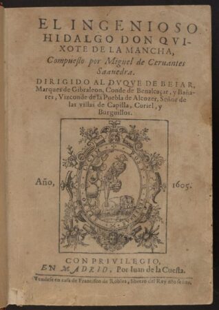 The library is perhaps best known for its early works of prose fiction, especially the novel in its varied forms—sentimental, chivalric, pastoral, and picaresque. The anonymous Lazarillo de Tormes, the original picaresque novel and one of Spain’s greatest contributions to world literature, is present in numerous early editions and translations. Other classics of the picaresque genre are found in their first editions, such as Mateo Alemán’s Guzmán de Alfarache (Barcelona and Madrid, 1599) and Francisco de Quevedo’s Historia de la vida del Buscón (Zaragoza, 1626). Generally considered to be the first modern novel and the most celebrated work of Spanish literature, Don Quixote by Miguel de Cervantes Saavedra, figures prominently in the collection. The Hispanic Sociaty is fortunate to have not only the first edition of both parts of Don Quixote (Madrid, 1605; 1615) but most of the early editions and translations.