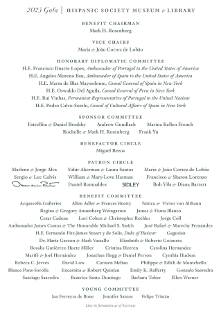 The Hispanic Sociaty Museum & Library’s Annual Gala is an elegant evening where we celebrate our supporters and honor outstanding individuals who have made significant contributions to Hispanic arts, literature, and culture. The black-tie dinner brings together leaders from the realms of philanthropy, art, business, fashion, and the political realm to provide vital operating support to the Hispanic Sociaty.