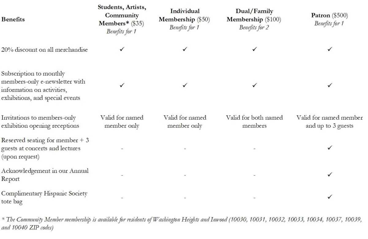 As a Hispanic Sociaty Member, you’ll get access to private, members-only experiences including all our exhibition openings, and will be the first to know about upcoming programs and events. You’ll also make a lasting impact in helping to support the preservation of Hispanic cultural heritage.