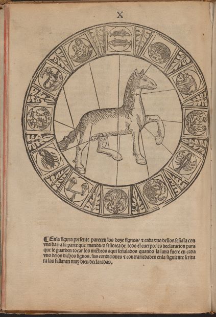 The manuscripts included attest to the breadth of the Hispanic Sociaty’s collection in period, geography, and function. Broadly speaking, the history of Spain is featured in medieval charters, holograph royal letters, letters patent of nobility, manuscript Bibles, books of hours, as well as historical, scientific, and literary manuscripts. In particular, illuminated manuscripts, bindings and printed works will evoke the era of convivencia, the period in the late Middle Ages when Muslim, Christian, and Jewish peoples lived as neighbors in the Iberian Peninsula. The Age of Exploration will be documented with navigational charts and manuals, while Nahuatl and bilingual manuscripts (pictographs with glosses in Spanish) will show how indigenous and European traditions coexisted and influenced each other.